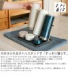 一般的な水筒(直径約6.5cm)を3本置くことができます。斜めに立てかけて飲み口を浮かせることで水切れが良く、素早く乾燥。背もたれのワイヤーはボトルにフィットする波型形状で、倒れにくく安定して設置でき、内部までしっかり乾かせます。錆びにくく耐久性に優れた18-8ステンレス製で、毎日清潔に使用可能。水垢やカビがつきにくく、お手入れも簡単です。こうした細やかな配慮は、金属加工の町として知られる新潟県・燕三条の職人による、丁寧なモノづくりから生まれました。