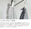 全サイズにハンギングループが付いているため、使用後はフックに掛けてさっと吊り下げることができます。乾きやすく、衛生的に使えるのもうれしいポイントです。