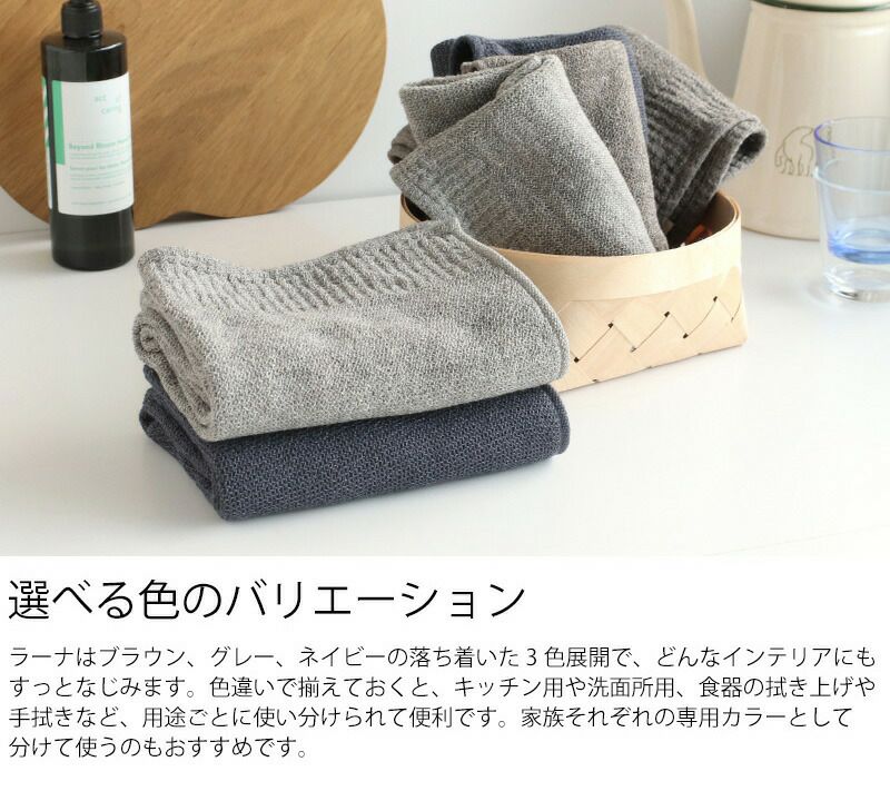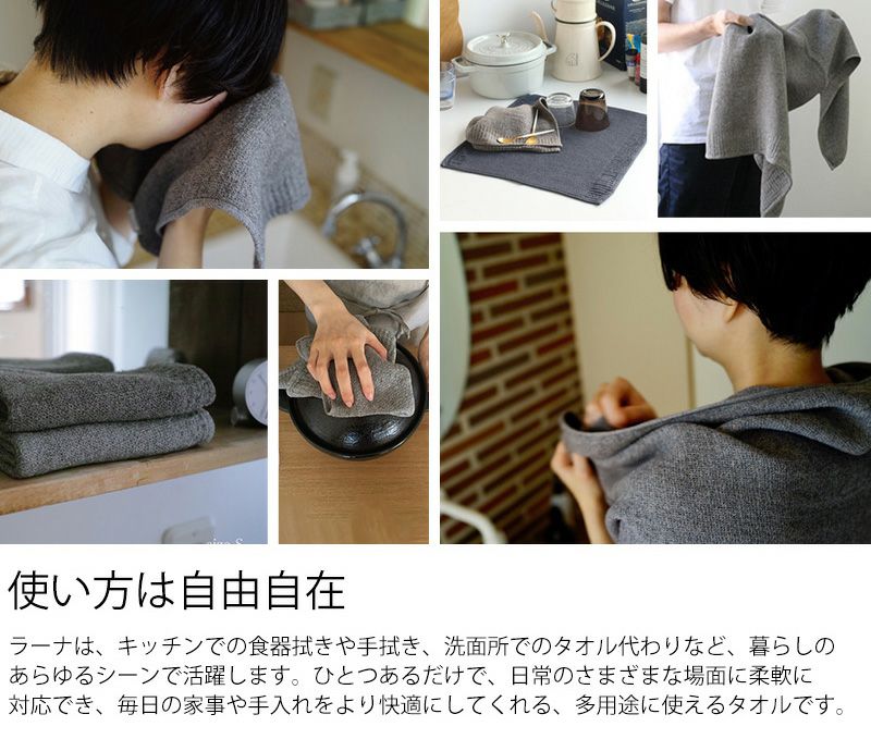 厳選した素材を使い、日本国内で安心・安全な加工をおこなっています。誰のための何のタオルなのか、暮らしの先にある幾多のシーンを常に思い浮かべて作られた製品は、素材の良さを最大限に引き出した使い心地の良さが魅力です。